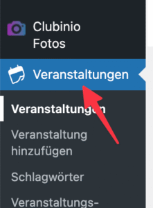 In der linken Sidebar findest du den Reiter „Veranstaltungen“.