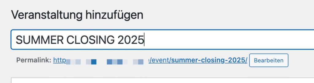 Passe Titel, Datum, Veranstalter, Beschreibung oder Beitragsbild an