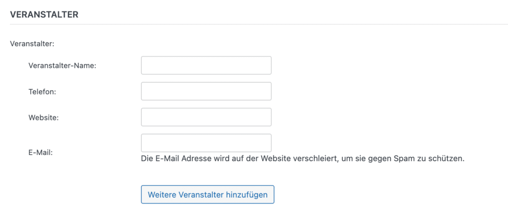 Im Feld „Additional Event Fields → Informationen“ gibst du deinen Veranstaltungstext (Konzept) ein.