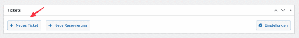 Um ein neues Ticket anzulegen, scrolle zum Bereich „Tickets“ und klicke auf „+ Neues Ticket“.